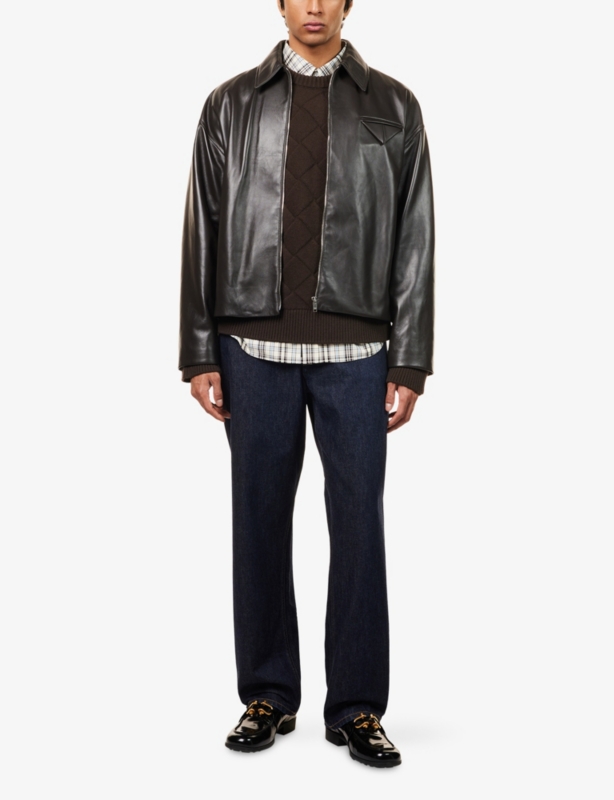 - Relaxed fit, polo collar, long sleeves, wide stripe pattern, waffle-knit