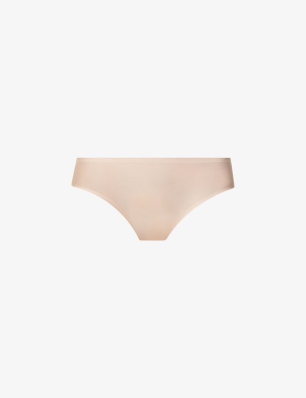 - Hipster shape, mid-rise, elasticated waistband, C-branded jewel at front, gold-toned hardware, chevron trims, floral lace, semi-sheer design, moderate coverage at back