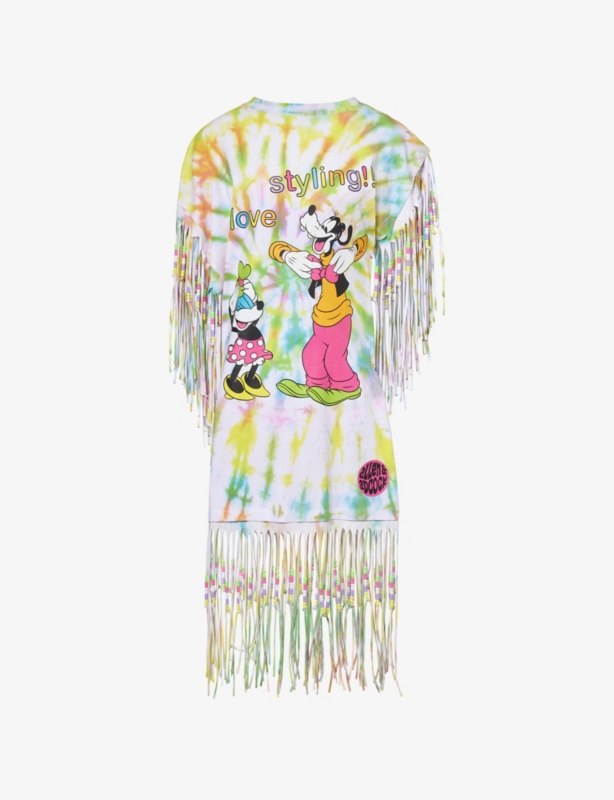 - Relaxed fit, H-line silhouette, straight-across neckline, drawstring shoulder, one bell sleeves, Minnie print at front and back