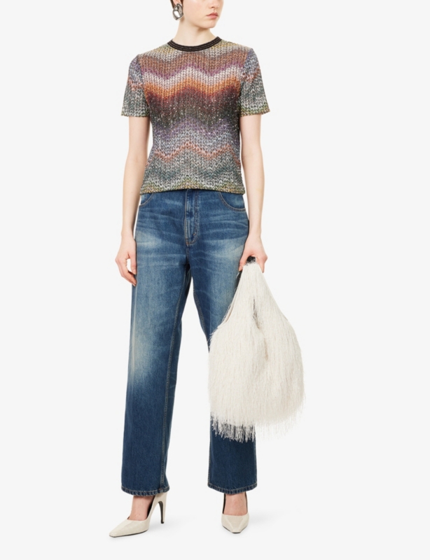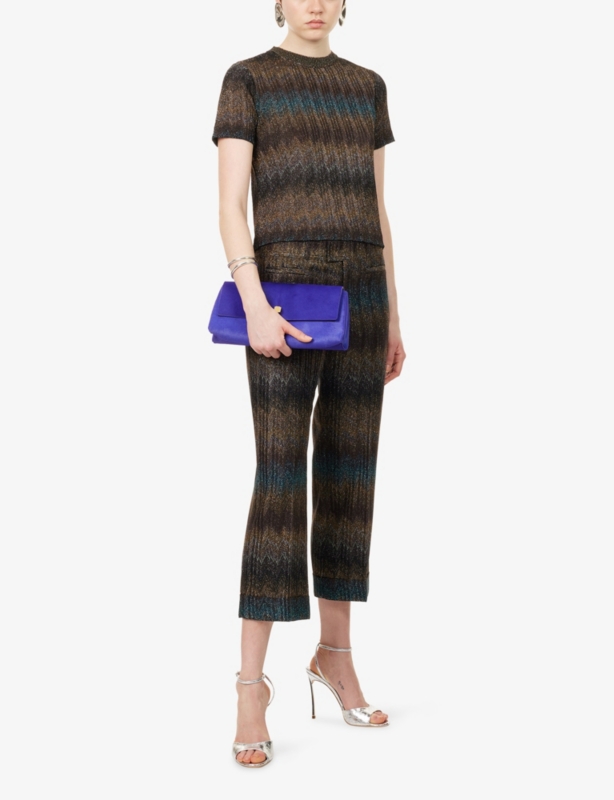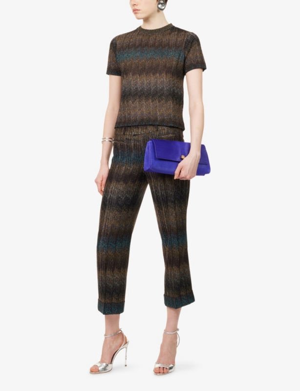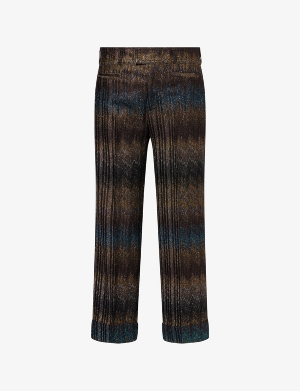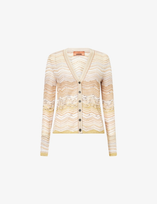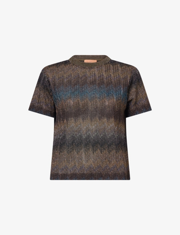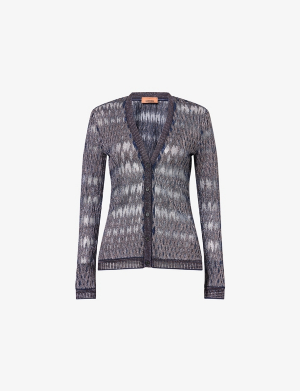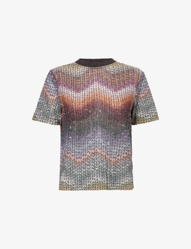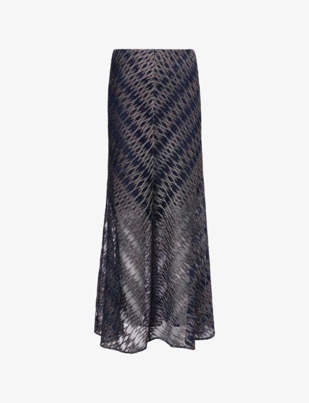 - Regular fit, high-neck, sleeveless, all-over chevron print, all-over knitted, multicolour, flared hem