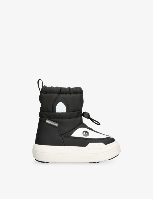 - Round closed toe, waterproof, lace-up design, printed branding, anatomical heel, thermo-insulating sole