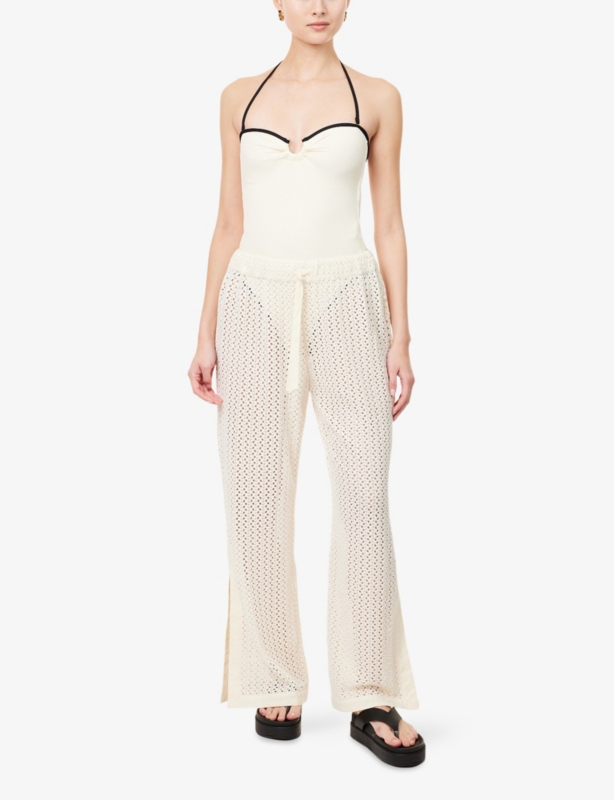- Mid-rise, elasticated waistband, all-over scallop texture, fully lined, slight-coverage at back