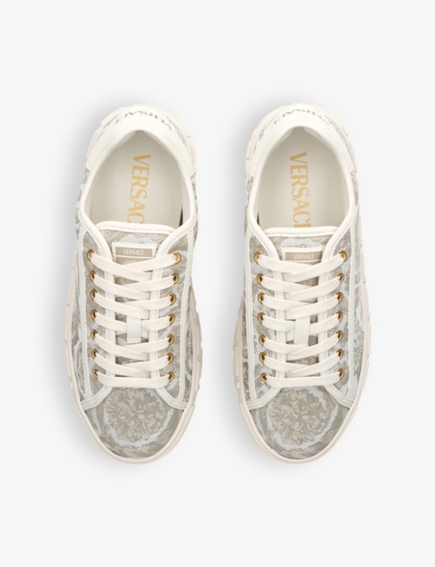 - Ankle rise, pointed toe, stiletto heel, gold tone Medusa logo at front