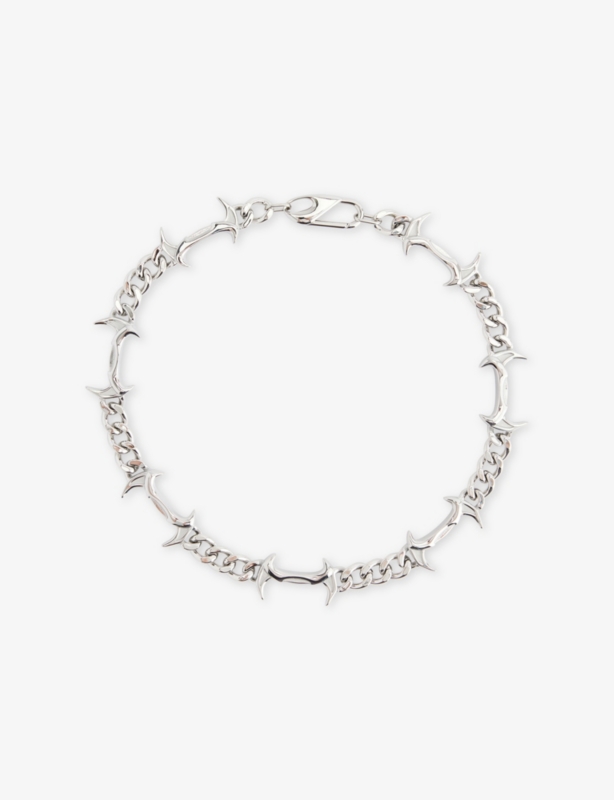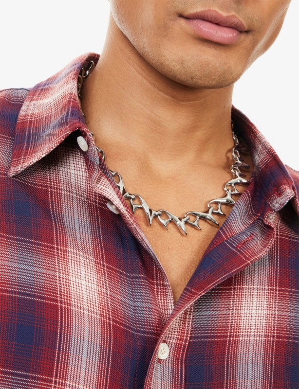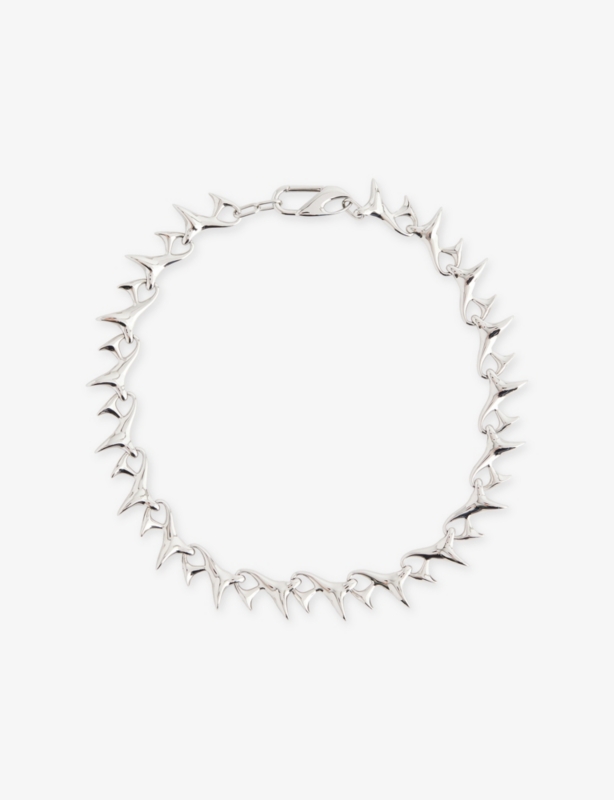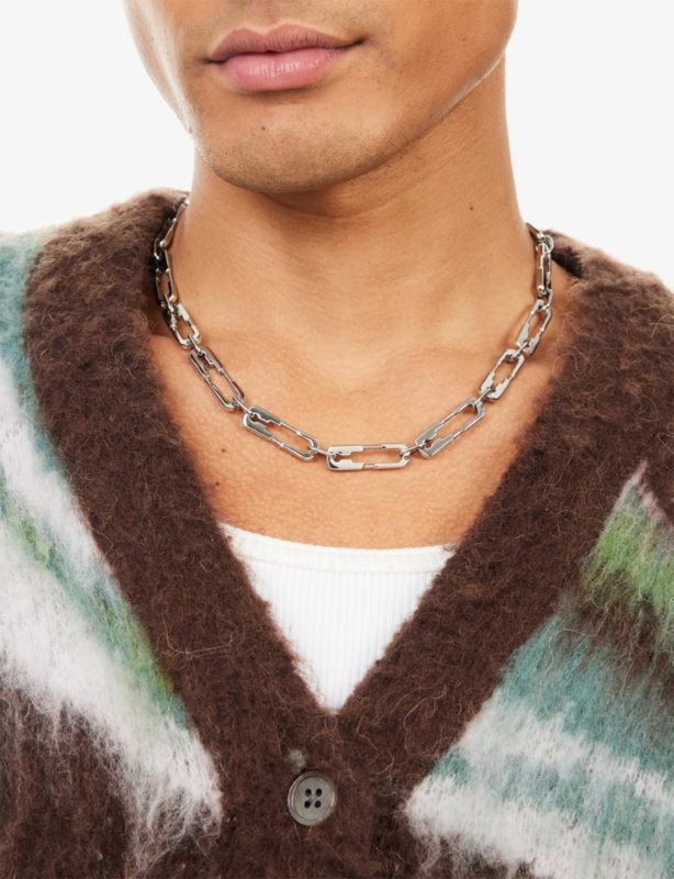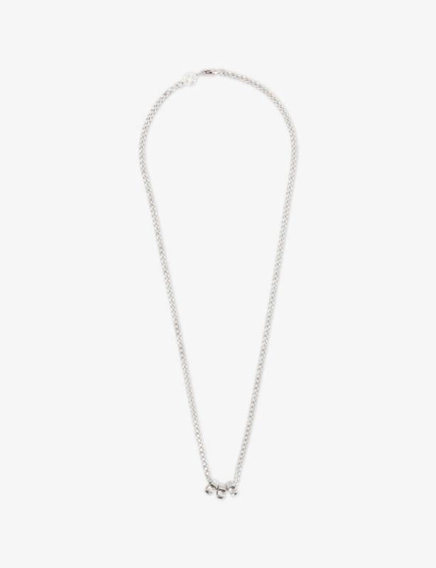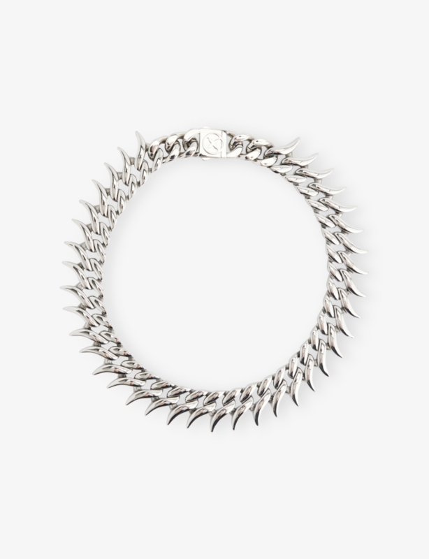 - Choker chain, double-side clasp, laser-etched logo at reverse, 0.8"" links, signature Glyph buckle clasp, polished finish