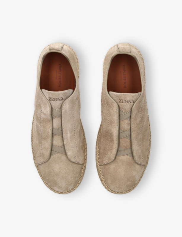 Italian icon Ermenegildo Zegna’s Triple Stitch trainers are one of its most popular offerings, and now the label puts a summery twist on the style with the Triple Stitch espadrilles. Dreamt up in supple suede and stacked on a jute sole, the pair is rounded at the toe and secured with the unmistakeable triple-stitch elasticated laces. We reckon they’re primed for sunny getaways to Tuscany.