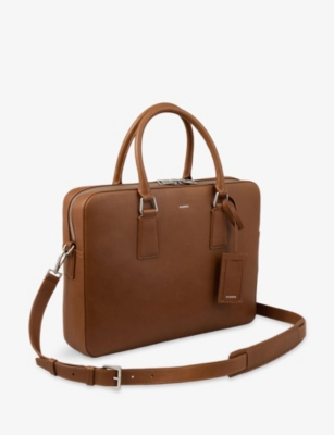 Our men's leather laptop bags are carefully constructed to protect your tech, wherever you're working from today. Cushioned sleeves and zip-up pouches keep contents secure, while structured shells offer an added defence against unexpected bumps in the road. Practical handles and shoulder straps across the selection make transportation simple. Look out for subtle branding on each piece: neat monikers pop out in metallic lettering and smart logos are embossed on metalwork for that hallmark of quality.