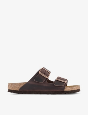 It was Konrad Birkenstock, the great-great-grandson of the company's founder, who invented the brand's world-renowned footbed in 1896. The innovative concept is based on the cast of a healthy foot in the sand, leaving yours free to stretch, flex and move naturally for supremely comfortable all-day wear. With this sculpted sole as the starting point for every shoe, our selection boasts a plethora of colours, styles and finishes. We've got easy single-strap slip-ons, sandals with secure buckle fastenings at the ankle and cosy Birkenstock slippers with soft lining. Supple leather is a firm feature here, along with touchable suede Birkenstocks and lightweight woven options that offer a loving embrace.Â