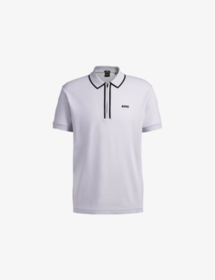 These men's BOSS polo shirts expertly fuse elements of a tee and a shirt, offering you smart-casual designer options. Explore short- and long-sleeved styles in both vibrant and muted shades, as well as classic designs with playful details - think coloured collars and sleeves tipped with contrasting stripes.