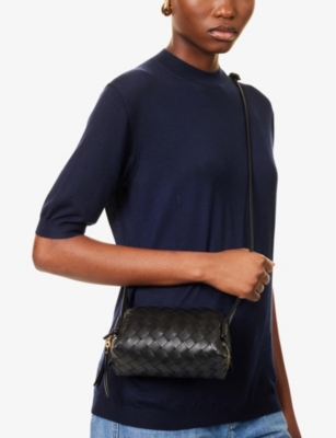 Our collection of Bottega Veneta leather handbags offers styles influenced by that very first innovation. Woven squares characterise the range, with both traditional calfskin patterns as well as contemporary iterations: think oversized weaves, metallic finishes and fluffy shearling options. You'll also spot gleaming metalwork across the range, with angular buckles and chunky chains adding a dash of dazzle to some of our favourites. We've got all sizes covered too, from oversized totes for all-day excursions to mini cross-body pieces for when you're travelling light.Â
