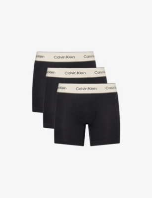 Named after its founder, Calvin Klein originated in New York in 1968 with a focus on the laid-back aesthetic. Calvin Klein men's boxer shorts and briefs are fitted with a supportive pouch and topped with a branded, elasticated waistband so they stay comfortably in place. Crafted from stretch-cotton for breathability and movement, the form-fitting styles are available in a number of leg lengths and include both plain and patterned designs. As well as the time-honoured black, grey and white versions the brand is known for, you'll find vibrant red and blue options for a playful touch.
