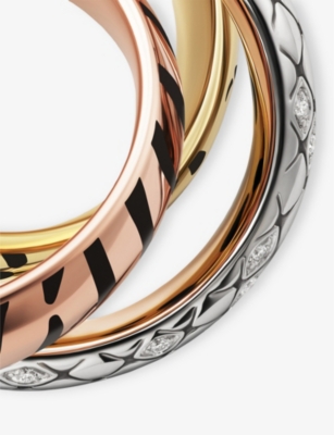 Trinity de Cartier large 18ct white, rose, yellow-gold and 3.50ct brilliant-cut diamond ring- Price:$419,650.00