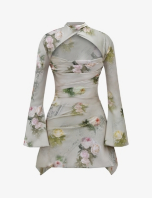 Toira floral-print draped-corset woven mini dress