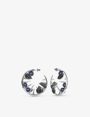 Add a sparkling touch to your outfit with brilliant-cut diamonds. The styles in our selection vary from solitaire diamond studs to those dripping in jewels with yellow-, white- and rose-gold metals. Stud earrings are handy for daily accessorising - from smooth metal styles to those that glisten with precious gemstones, the compact designs will easily pair with your next ensemble. Hoops are eternally fashionable, from the small options that seem to hug your ear to larger statement-making items. The hoop-shaped styles in our range include chunky and textured with a mixture of metals, plus finer hoops for subtlety. Drop earrings create a dressier aesthetic and are ideal for wearing to parties or dinner events, especially when adorned with pretty mother of pearl or turquoise - look out for the different fastenings to keep your jewellery in place, from spring-ring clasps to butterfly closures.