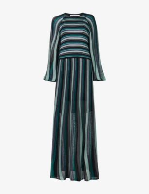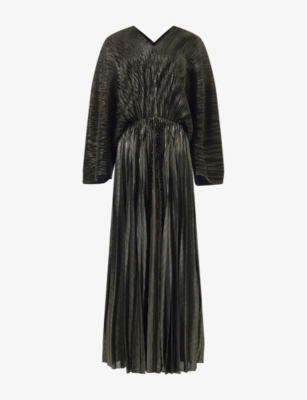 V-neck long-sleeve metallic-yarn kaftan- Discount price:$600.00