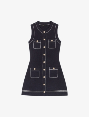 Topstitched Patch-Pocket Cotton-Blend Mini Dress- Discount price:$1,670.00