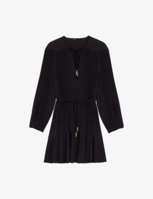 Many delicate styles have charming additions, like soft Peter Pan collars and playful scalloped edges. A trademark of Maje dresses is the reference to the romantic, and you'll see this in Maje ruffle dresses, with their voluminous use of fabric. This adds a sense of the theatrical, with patterned tiers galore. The silhouettes are exciting and thoughtfully conceived for impact - note the flattering fits with cinching at the waist.