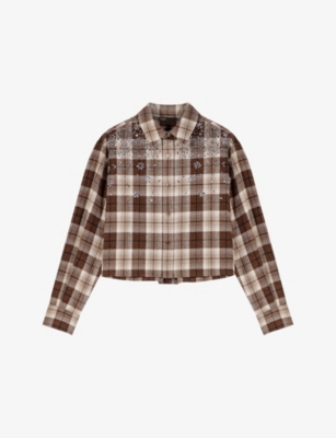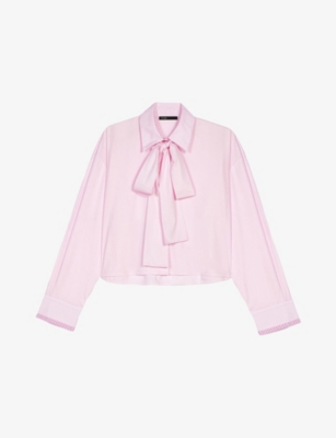 Rhinestone-Embellished Tie-Neck Stretch-Cotton Shirt- Discount price:$1,690.00