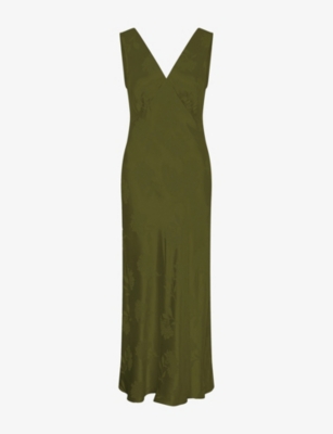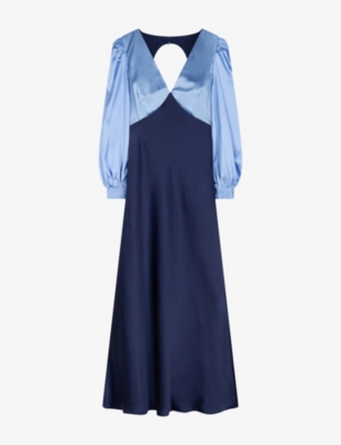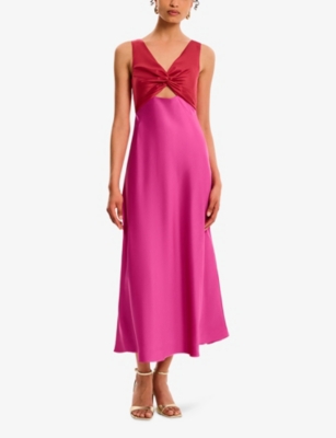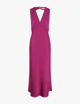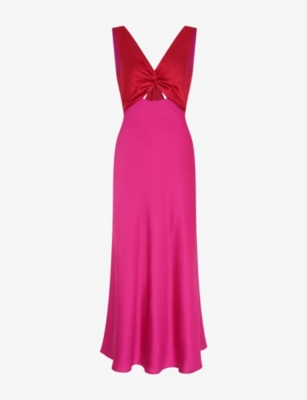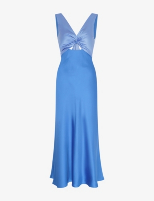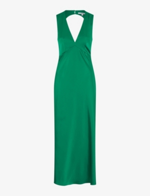 Maggy V-Neck Cut-Out Sleeveless Satin Midi Dress