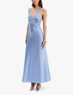 Aurelia Lace-Trim Satin Maxi Dress