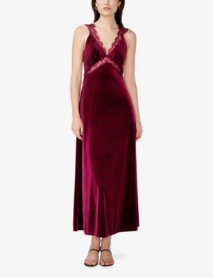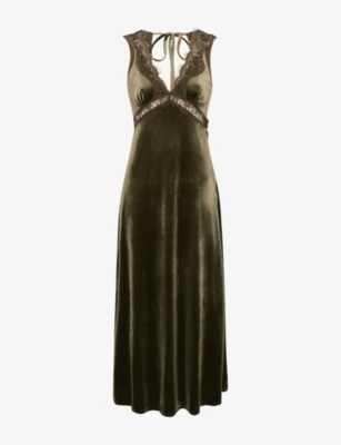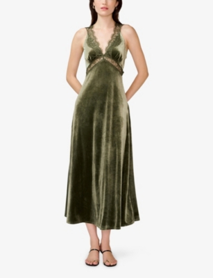 Aurelia Lace-Trim Velvet Midi Dress