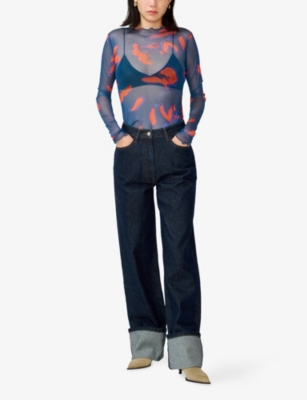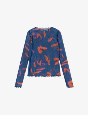 Lorrie Mesh Leaf-Print Stretch-Mesh Top