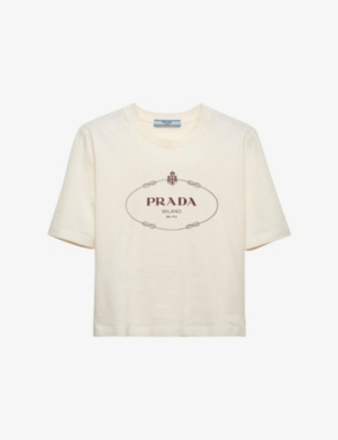 PRADA: Oversized Round-Neck Cotton-Jersey T-ShirtPRADA: Oversized Round-Neck Cotton-Jersey T-Shirt