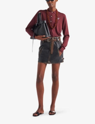 PRADA: Brand-plaque slim-fit cotton midi dressPRADA: Brand-plaque slim-fit cotton midi dress