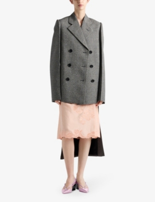 Mario Prada established the brand in Milan in 1913. Today, his granddaughter, Creative Director Miuccia Prada - who has spearheaded the label since the eighties - and her design partner, Raf Simons, continue to challenge the status quo by reinterpreting traditional silhouettes with a contemporary sensibility. In our Prada women's clothing curation, this translates to wearable pieces with an unconventional spin. For instance, A-line shapes that reveal floor-length trains at the back and demure cardigans that are updated with a semi-sheer finish. Juxtapositions take centre stage - think soft cotton paired with delicate tulle and romantic prints teamed with utilitarian elements.