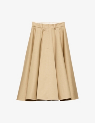 Chino flared cotton midi skirt