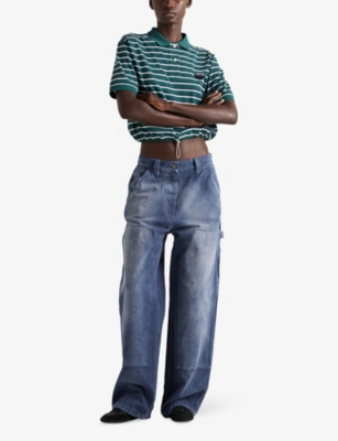 Brand-plaque slim-fit cotton midi dress