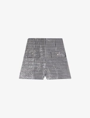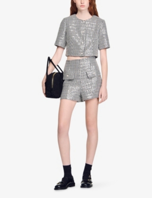 Houndstooth-Pattern Sequin-Embellished Tweed Shorts