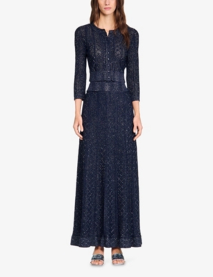 Flared Rhinestone-Knit Maxi Skirt