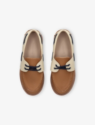 Kids' Contrast-Panel Leather Boat Shoes