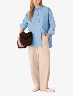 Striped V-Neck Long-Sleeve Linen-Blend Blouse- Discount price:$455.00