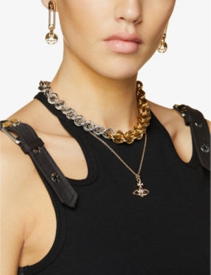 Mini Bas Relief brass and cubic zirconia pendant necklace- Price:$980.00