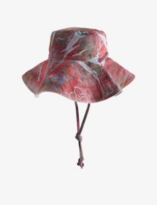Whether you're off on your holidays or planning a festival trip with friends, lightweight ladies' bucket hats offer sun protection while helping to keep things nice and cool. Opt for a bohemian velvet or cashmere style when you're beach-bound or a branded version that hints at 90s logomania. Is the forecast taking a turn for the worse? Tufted boucle will help your head stay cosy in the cold, and water-resistant fabrics are just the thing for rainy days - or the classic British summer. For an artisanal aesthetic, we love knitted styles with hand-finished elements like ruffles and layers of embroidery.