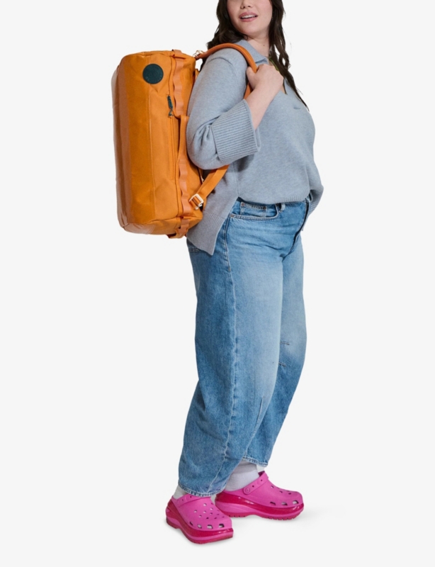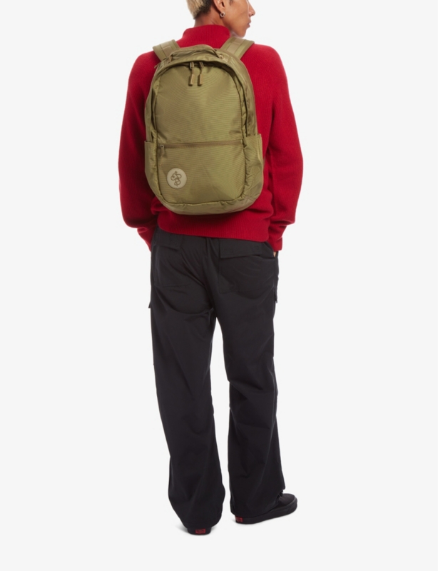 - Adjustable shoulder straps, top handle, zip pockets at exterior, brand patch at exterior, main compartment, zip pocket at interior