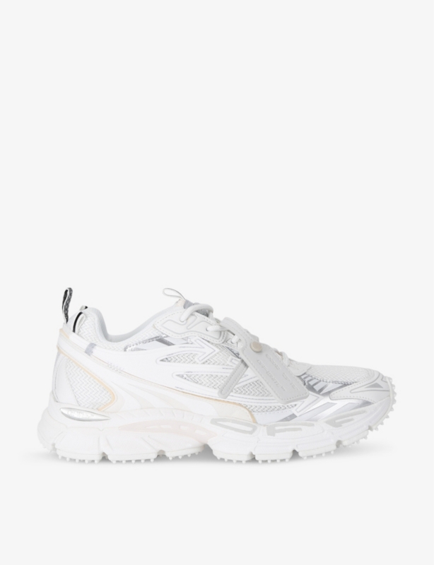 - Round toe, perforated details, signature arrow motifs on the side-wall, iconic Off White tag branding, padded tongue and collar, low-top silhouette, ribbed heel, cushioned insole, contrasting sole