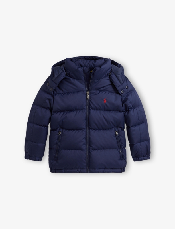 - Button-down collar, double-button barrel cuffs, front button closure, embroidered logo to chest, box-pleated back yoke