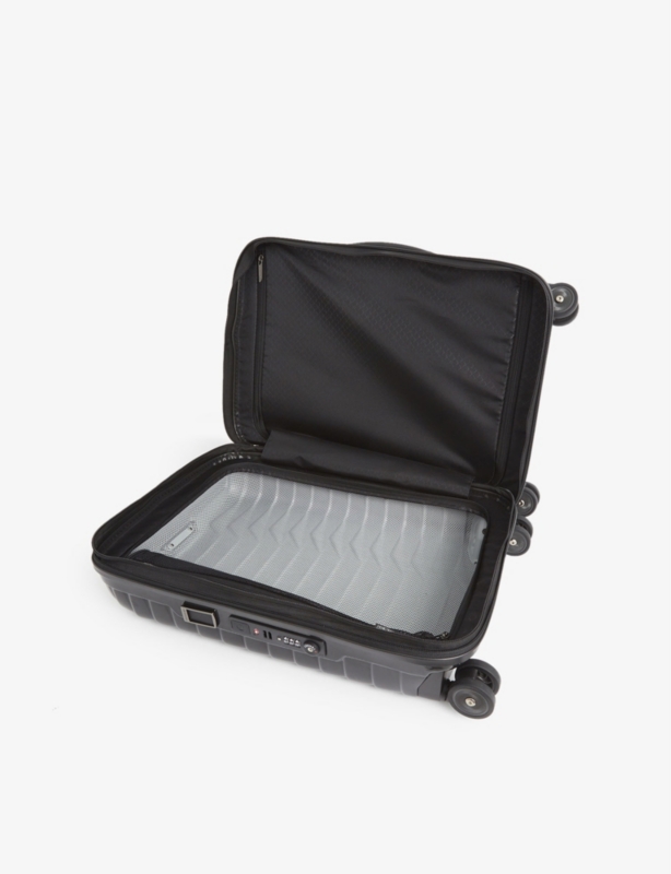 - Combi lock with TSA, top and side handles, shock and noise reducing suspension wheels, integrated ID tag, logo at front, one main compartment, mesh compartments, expandable, washable lining, textured design