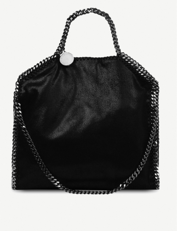 - Two chain-link top handles, chain-link shoulder strap, chain trim, internal slip pocket, fully lined