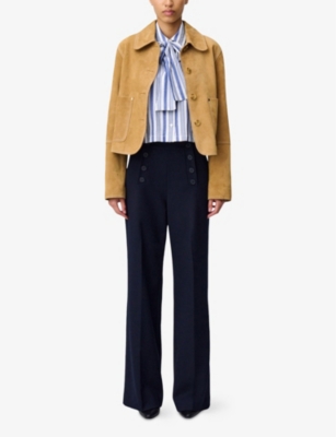 In our collection of Claudie Pierlot clothing, look out for bona fide classics you'd find in many armoires françaises - think nautical stripes, tailored blazers and wrap coats. Madam Claudie asserted that fashion should be suitable for everyday outfitting. These days, that means adaptable pieces which seamlessly slot into your life. This ethos translates to easy throw-ons like relaxed Claudie Pierlot tops, textured knitwear and neat skirts that will take you from important meetings to relaxed drinks with friends.