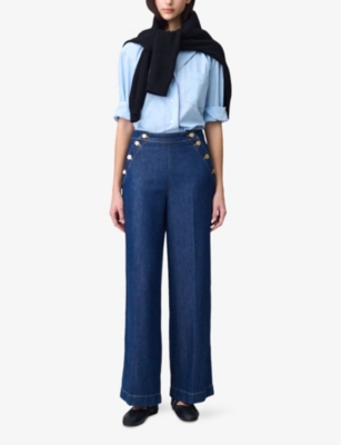 Alongside clothes, our selection also includes bags and accessories. A skilful combination of Parisian elegance and practicality underpins the range, from structured cross-body carriers featuring quilted exteriors and polished hardware to sleek cardholders. These attributes apply to its footwear, too. Ankle-grazing and knee-high boots embody a cool quality - look out for wide toplines that style well with tucked-in jeans or tapered trousers.