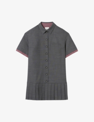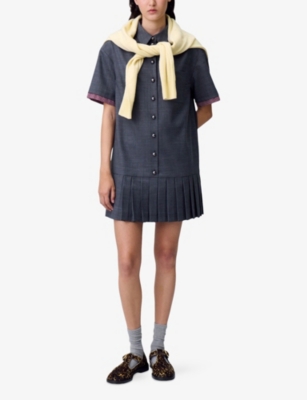 Checked Pleated Wool-Blend Mini Dress- Discount price:€270.00