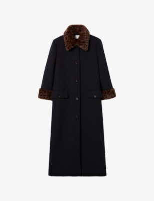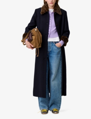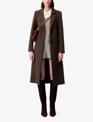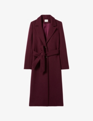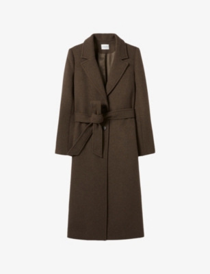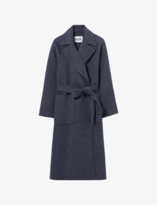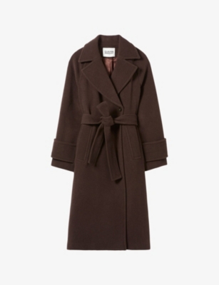 Fringed Belted-Waist Long Wool-Blend Coat- Discount price:£519.20