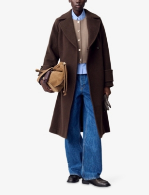 Long Lapel-Collar Double-Breasted Wool Coat- Discount price:€690.00