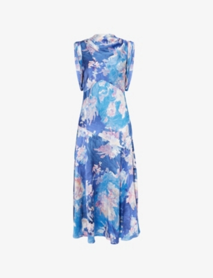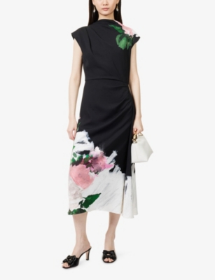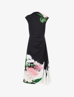 Floral Draped Stretch-Woven Midi Dress