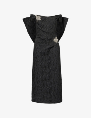 Off-Shoulder Embellished Woven Midi Dress