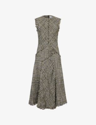 Sleeveless Round-Neck Tweed Midi Dress