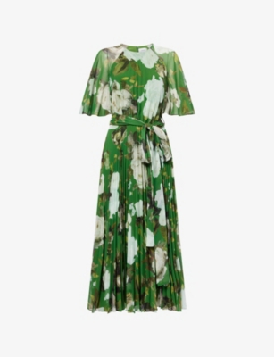 Floral-Print Pleated Chiffon Midi Dress
